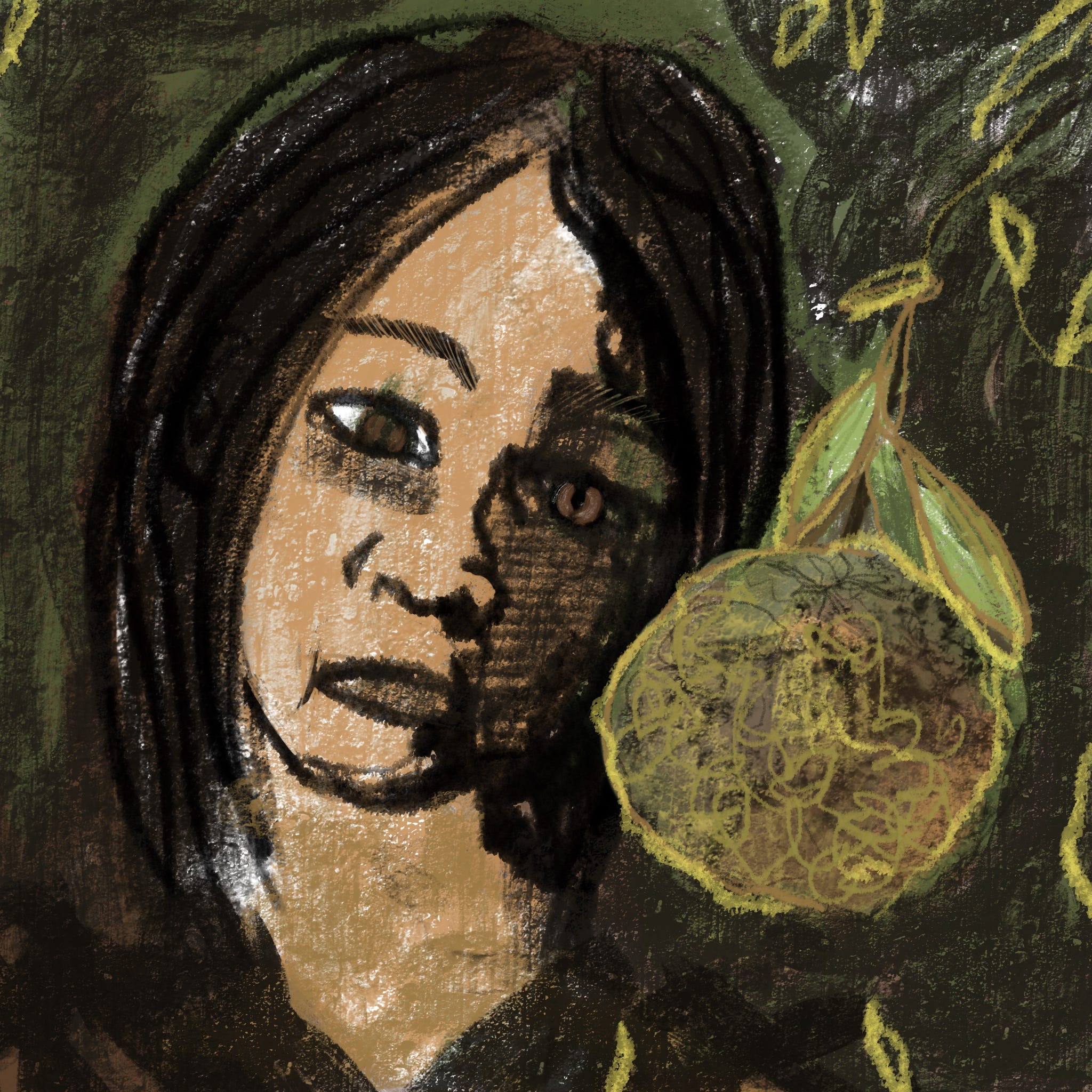 That was decades ago. Vivienne’s now middle-aged face brushed a long branch of a citrus tree, coursing water down to the ground, its leaves broad and waxy. A soft, heavy weight lumped against her right eye, an old grapefruit, half-rotten on the branch. Ants clung to it for life against coursing rainwater. She brushed them away.