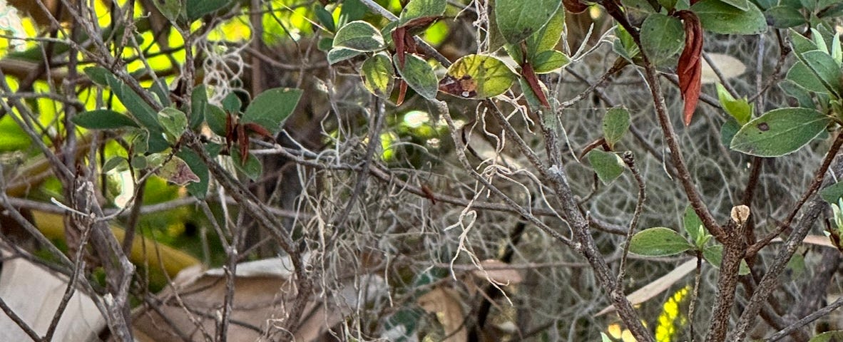 She fitted her boots upside down on branches, and draped the wet clothes beside them. She rubbed her near-naked body. Even with this cooler, drier air whipping in, her clothes would not dry easily. So she left them, parting the boughs of the overgrown orange tree to explore.